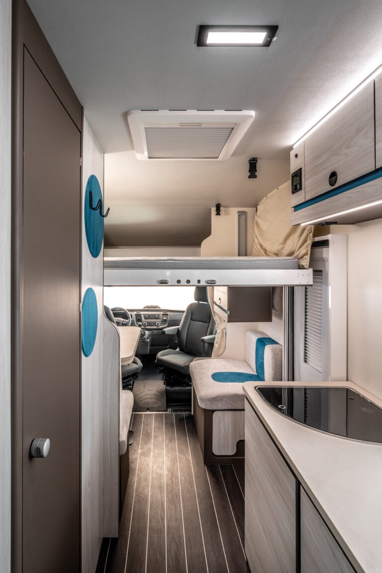 Το Rimor Kilig 78 Plus είναι ένα ευέλικτο και οικογενειακό αυτοκινούμενο, ιδανικό για όσους θέλουν άνεση και πρακτικότητα σε πιο συμπαγείς διαστάσεις. Με εμπρόσθιο drop-down κρεβάτι, πίσω μόνιμο διπλό κρεβάτι και δυνατότητα επιπλέον κλίνης στην τραπεζαρία, προσφέρει φιλοξενία για έως 5 άτομα.