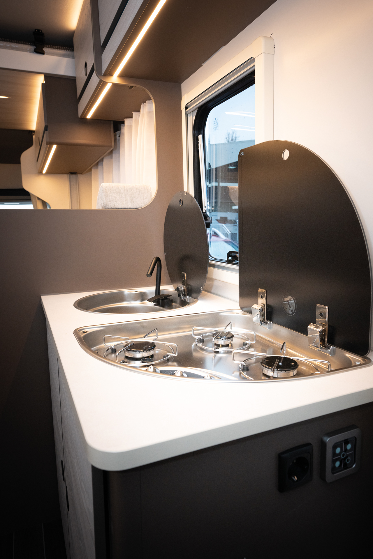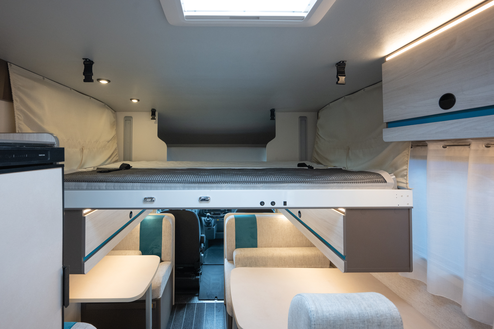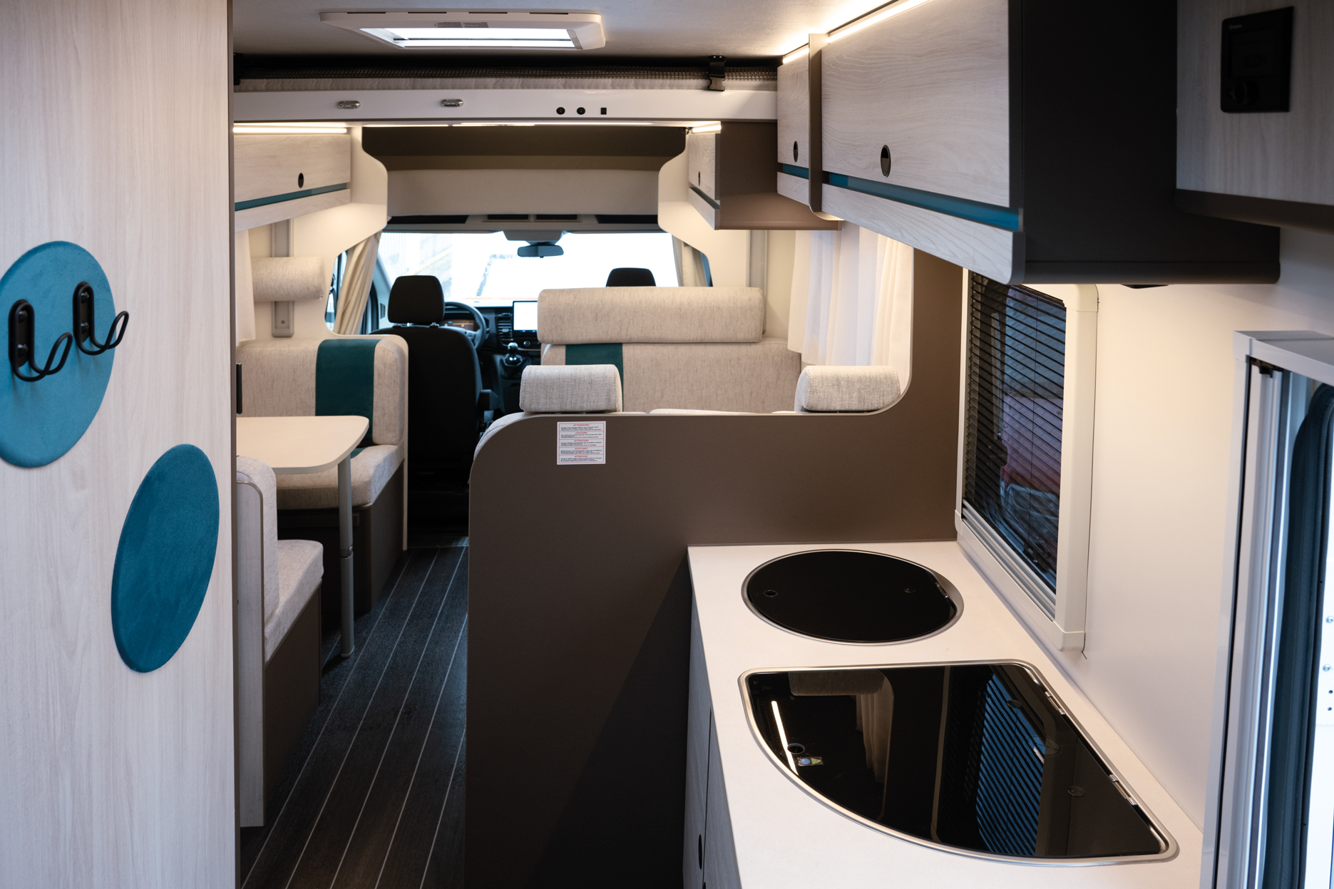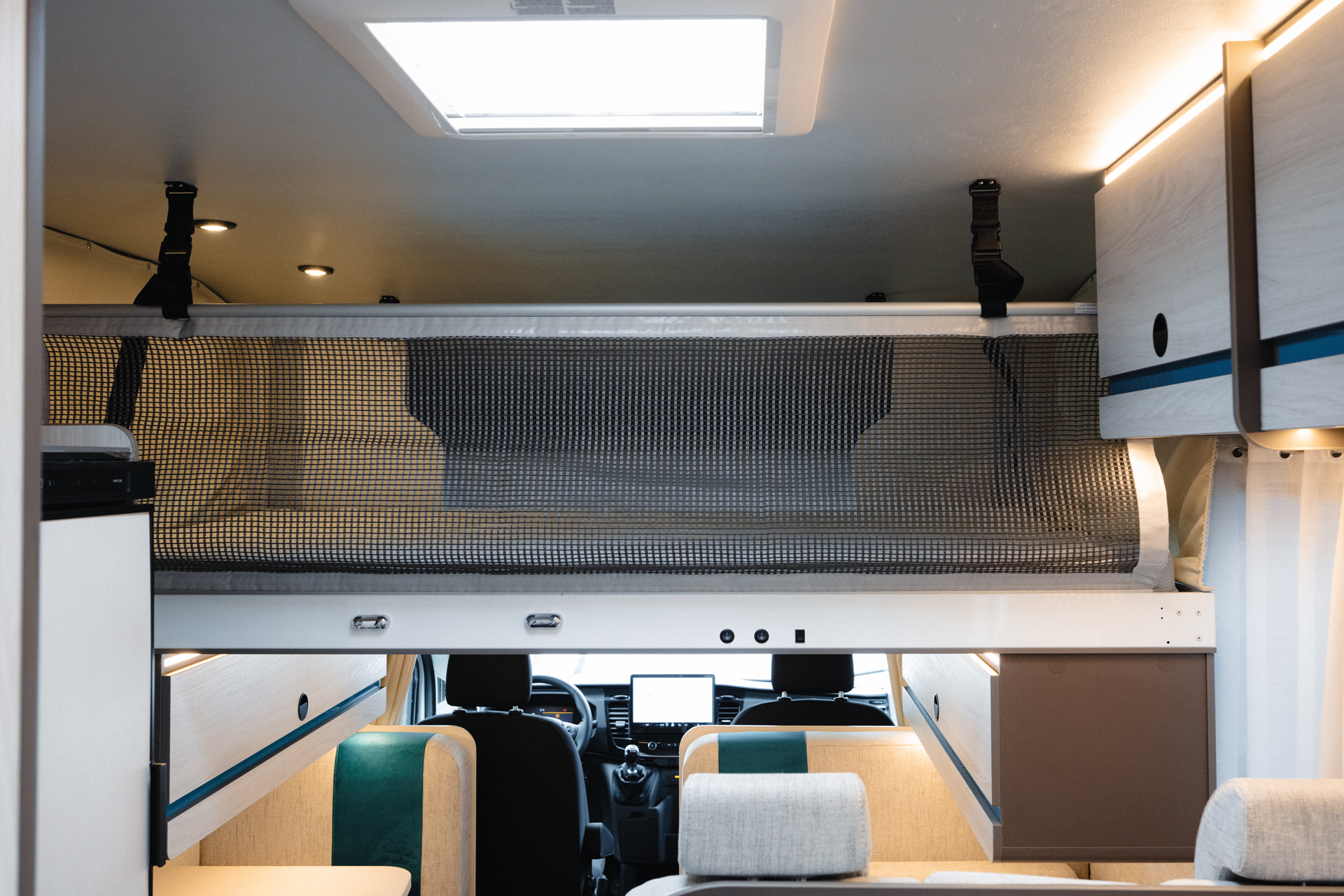 Ο εσωτερικός χώρος του Kilig 79 Plus ξεχωρίζει για τη σωστή κατανομή ύπνου και καθημερινής διαβίωσης. Οι πίσω κουκέτες, το εμπρόσθιο αναδιπλούμενο κρεβάτι και η κεντρική τραπεζαρία δημιουργούν ένα λειτουργικό περιβάλλον για πολλές θέσεις ύπνου χωρίς να περιορίζεται η κυκλοφορία στον χώρο. Η εργονομική κουζίνα και το πλήρως εξοπλισμένο μπάνιο εξασφαλίζουν πρακτικότητα, ενώ οι αποθηκευτικοί χώροι καλύπτουν τις ανάγκες οικογενειακών ταξιδιών μεγάλης διάρκειας.