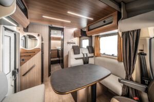 Το Sarus 8 προσφέρει έναν άνετο και πρακτικό εσωτερικό χώρο με μεγάλο σαλόνι που συνδυάζεται με τα περιστρεφόμενα καθίσματα της καμπίνας δημιουργώντας έναν ενιαίο χώρο καθιστικού. Η πλήρως εξοπλισμένη κουζίνα με τρεις εστίες και μεγάλο ψυγείο εξασφαλίζει πρακτικότητα στην καθημερινή χρήση, ενώ τα άνετα κρεβάτια και οι αποθηκευτικοί χώροι κάνουν το μοντέλο ιδανικό για ταξίδια με οικογένεια ή φίλους.